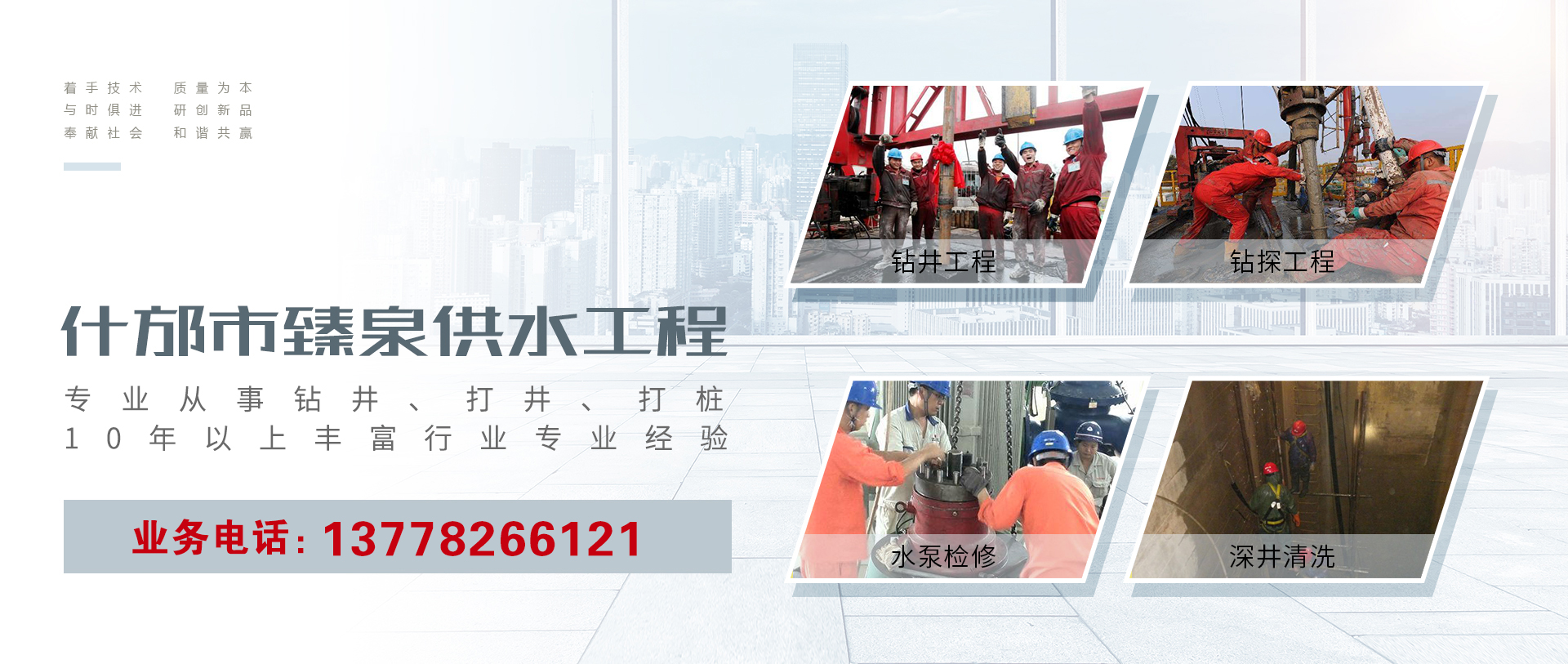 什邡市臻泉供水工程有限公司,座落于四川省德陽市什邡市南泉鎮(zhèn)南陽村15組,公司成立于2017年,目前是四川德陽地區(qū)專業(yè)從事工地降水井施工、降水井排水管道安裝布設(shè)、農(nóng)業(yè)灌溉井施工、工業(yè)深水井施工、人畜飲水工程深水井施工、野外地下水勘探、工地基礎(chǔ)護(hù)壁樁、橋梁承重樁施工的專業(yè)打井、降水、打樁、水塔安裝的施工隊(duì)伍。 公司在成立的前身是一支10多年時間常年在四川甘孜州、阿壩州、德陽市、成都市、綿陽市、南充市、遂寧市、青海省玉樹自治州、西藏自治區(qū)日喀則市、阿里地區(qū)、...